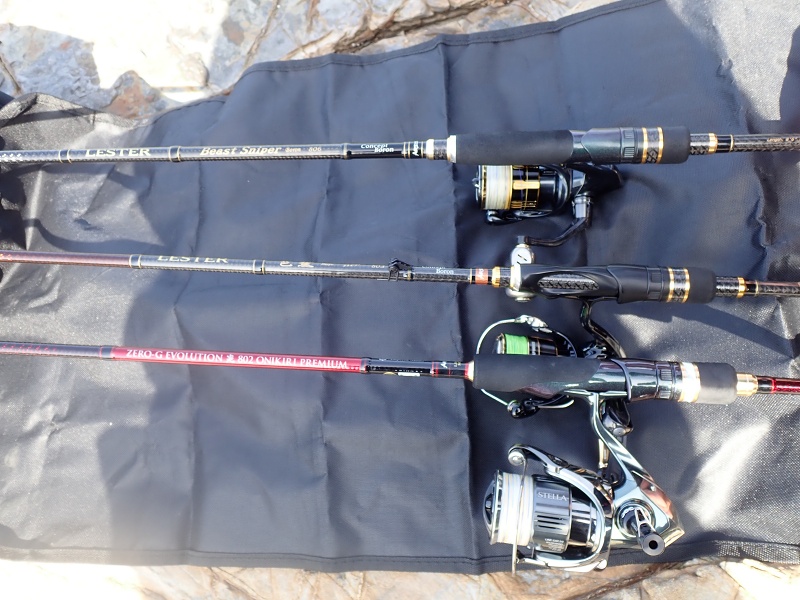 GW特別企画。本日午前4時、いつもの地磯にヒムカのイカ釣りオヤジ3人が集結しました。やすさん、ドンジー、セイの3人。本日、3人が使用するロッドの合計重量は385gくらい!ビーストスナイパーに芭蕉に鬼切。(宇崎)にっしん三兄弟です。
