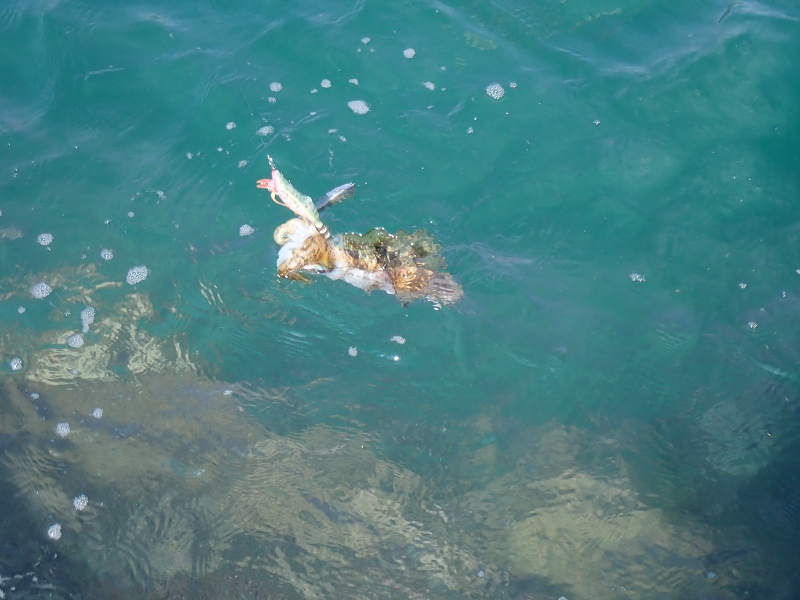 ボトムあたりでイカをかけたせいか当初はそこそこ重く感じて、500gぐらいの手応えに感じましたが、浮いてくるにつれて徐々に軽くなりました。500gはありませんが、300g少しというサイズでした。「う~ん、まあ嬉しいけど、こんなサイズを狙っているわけではない」ということでリリースしました。