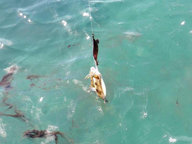 トンビ磯はやはり「サイズはともかく必ず釣れる場所」でした。シャローにて140gが釣れたのち、奥のワンドにてサイトで250gが釣れました(2杯ともリリース)。釣れるのはありがたいのですが、狙っているイカはもっと大きいやつです。