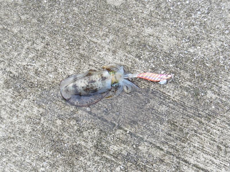 その後、私もエギングを少ししましたが、波止エギングに慣れてないせいなのか何なのか、釣れませんでした。波止でエギングなんて、かなり久々ですが、なかなか難しいです。どこにイカがいそうかまったく見当が付きませんでした(笑)。